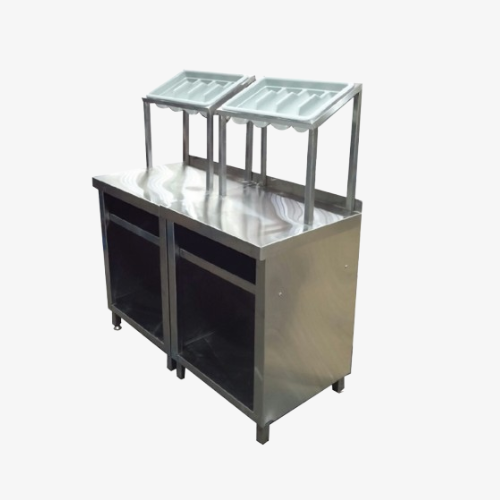 - Imported fibre plastic cutlery box on stainless steel pipe structure.